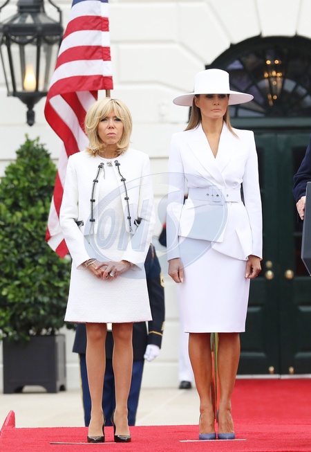 Brigitte i Emmanuel Macron, Melania i Donald Trump przed Bialym Domem - duzo zdjec
