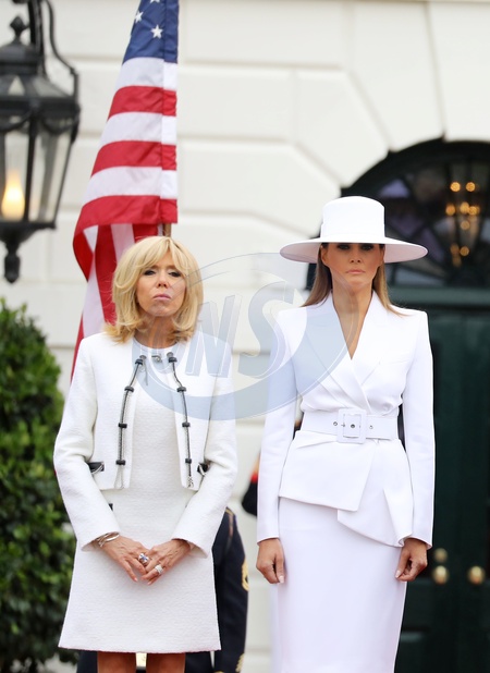Brigitte i Emmanuel Macron, Melania i Donald Trump przed Bialym Domem - duzo zdjec