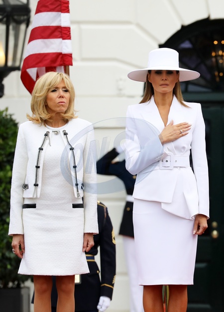 Brigitte i Emmanuel Macron, Melania i Donald Trump przed Bialym Domem - duzo zdjec