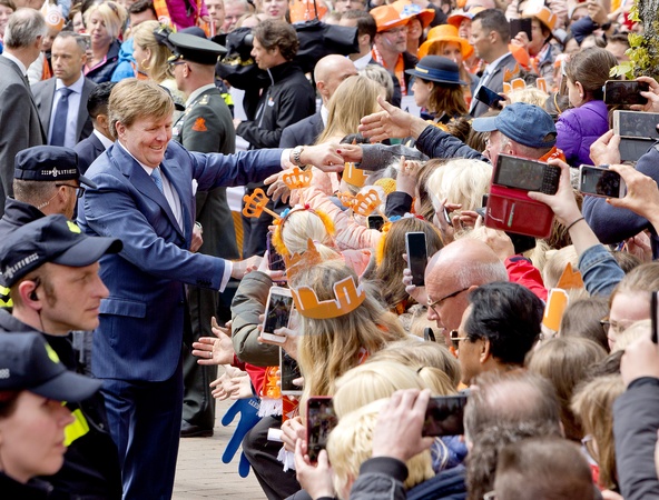 Krol Holandii z zona i corkami na Kings Day w Groningen