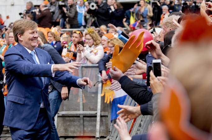 Krol Holandii z zona i corkami na Kings Day w Groningen