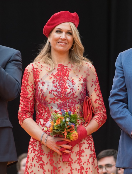 Krol Holandii z zona i corkami na Kings Day w Groningen