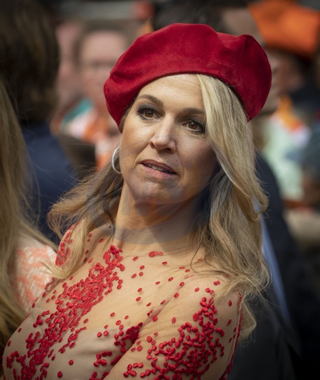 Krol Holandii z zona i corkami na Kings Day w Groningen