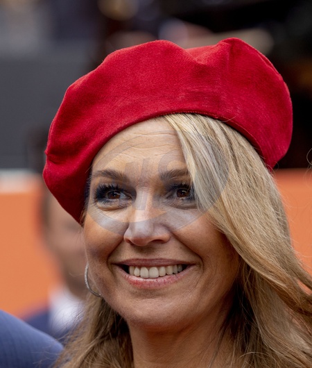 Krol Holandii z zona i corkami na Kings Day w Groningen