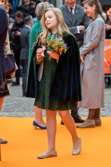 Krol Holandii z zona i corkami na Kings Day w Groningen
