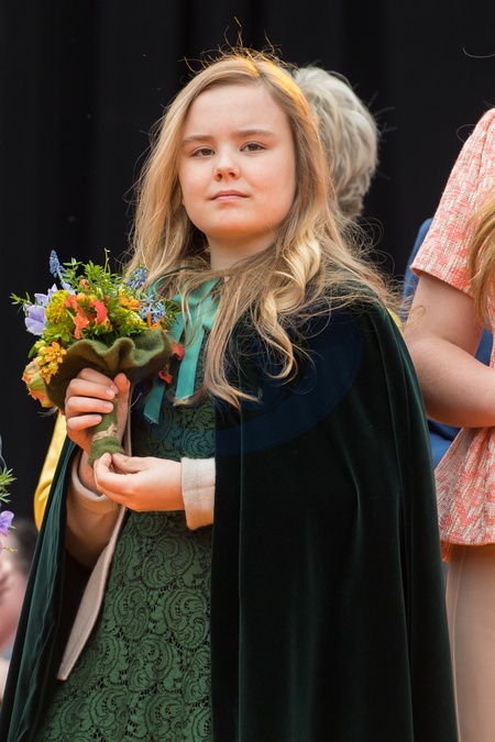 Krol Holandii z zona i corkami na Kings Day w Groningen