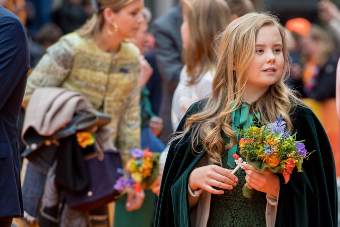 Krol Holandii z zona i corkami na Kings Day w Groningen