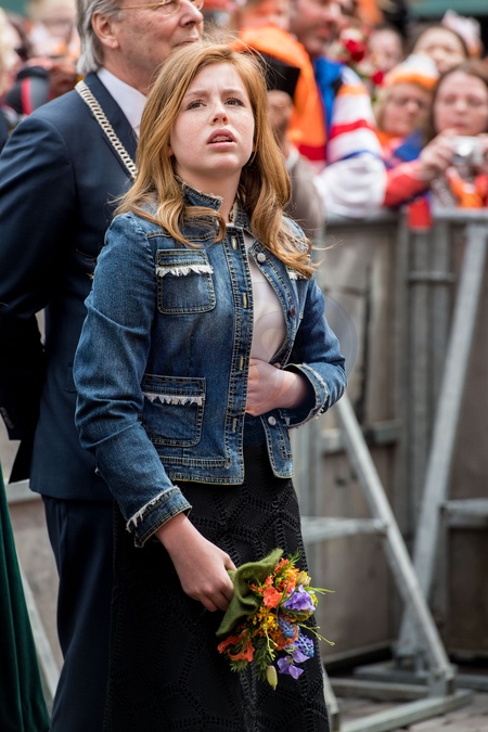 Krol Holandii z zona i corkami na Kings Day w Groningen