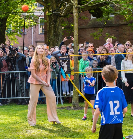 Krol Holandii z zona i corkami na Kings Day w Groningen
