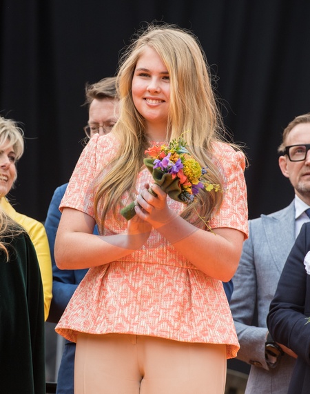 Krol Holandii z zona i corkami na Kings Day w Groningen