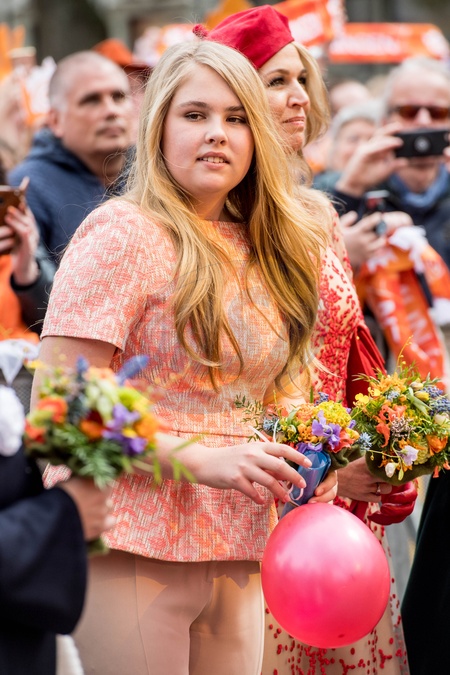 Krol Holandii z zona i corkami na Kings Day w Groningen