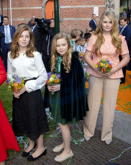 Krol Holandii z zona i corkami na Kings Day w Groningen