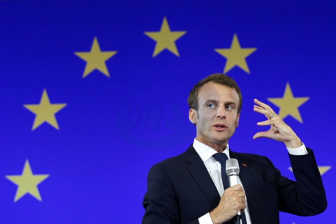Emmanuel Macron na spotkaniu ze studentami w Aachen