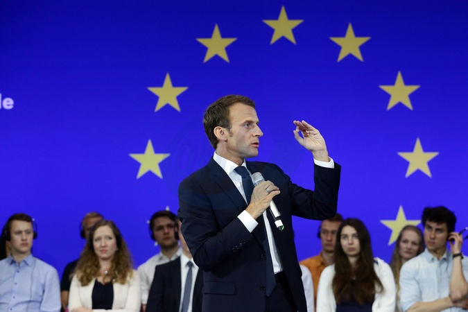 Emmanuel Macron na spotkaniu ze studentami w Aachen