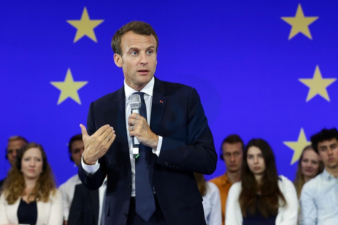 Emmanuel Macron na spotkaniu ze studentami w Aachen