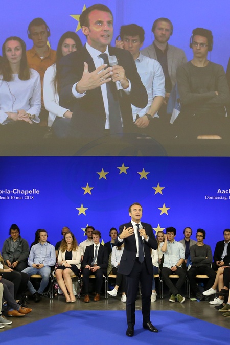 Emmanuel Macron na spotkaniu ze studentami w Aachen