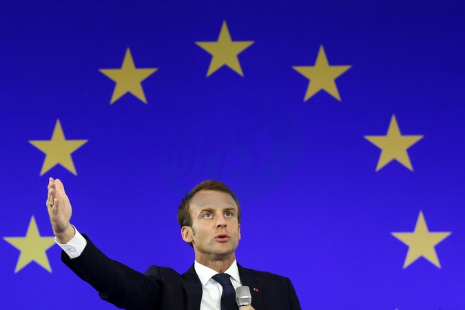 Emmanuel Macron na spotkaniu ze studentami w Aachen