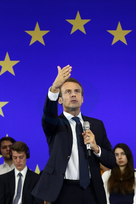 Emmanuel Macron na spotkaniu ze studentami w Aachen