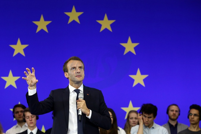 Emmanuel Macron na spotkaniu ze studentami w Aachen