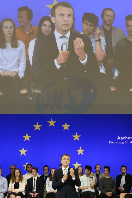 Emmanuel Macron na spotkaniu ze studentami w Aachen