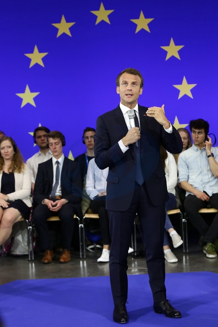 Emmanuel Macron na spotkaniu ze studentami w Aachen