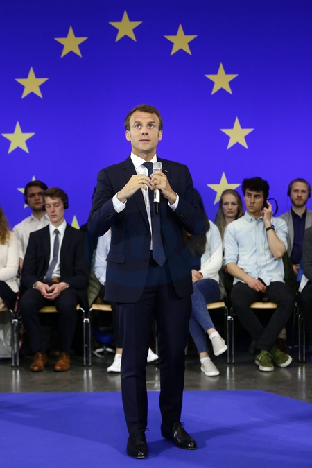Emmanuel Macron na spotkaniu ze studentami w Aachen