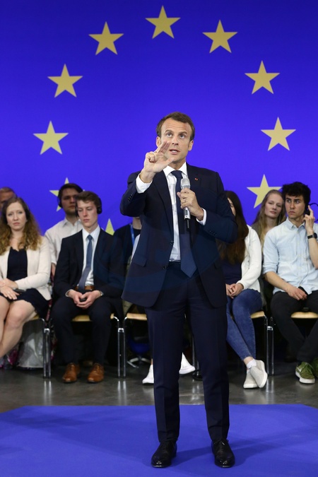Emmanuel Macron na spotkaniu ze studentami w Aachen