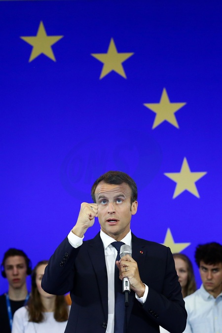 Emmanuel Macron na spotkaniu ze studentami w Aachen