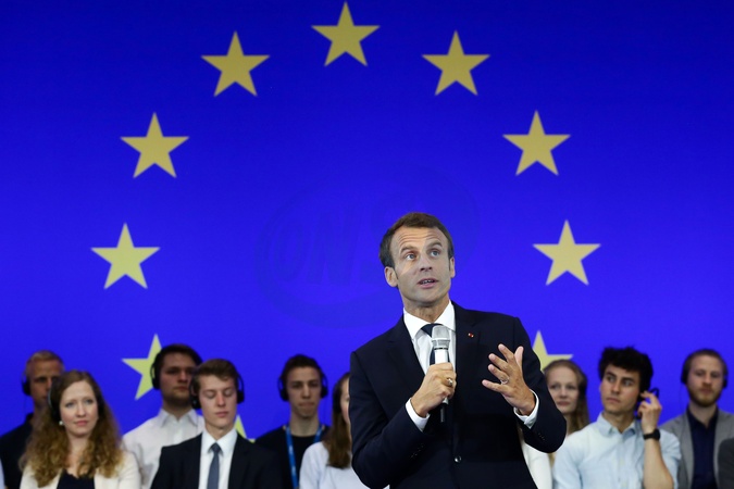 Emmanuel Macron na spotkaniu ze studentami w Aachen