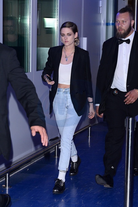 Bella Hadid i Kristen Stewart wychodza z Palacu Festiwalowego w Cannes