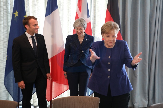 Theresa May, Angela Merkel, Emmanuel Macron