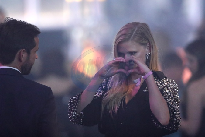 Lara Stone i jej chlopak caluja sie na gali AMFAR