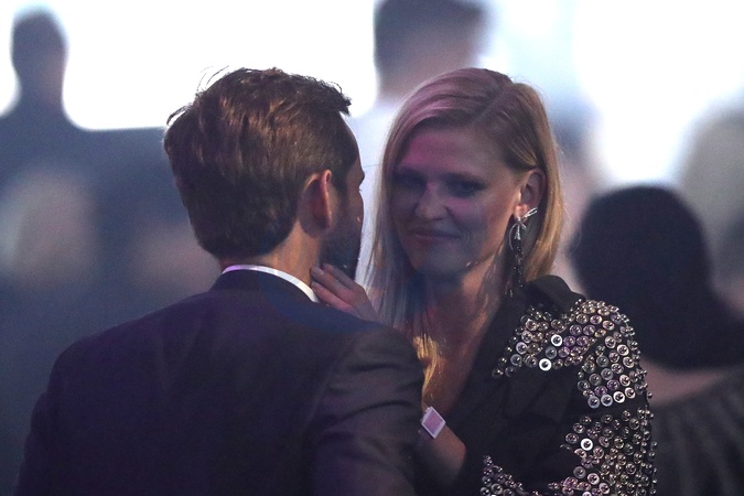 Lara Stone i jej chlopak caluja sie na gali AMFAR