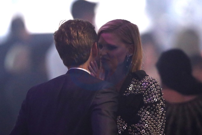 Lara Stone i jej chlopak caluja sie na gali AMFAR