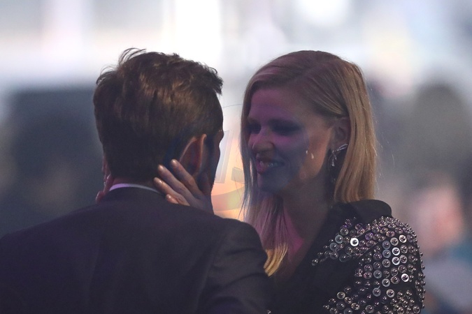 Lara Stone i jej chlopak caluja sie na gali AMFAR