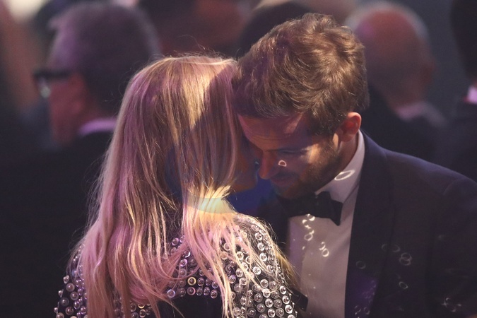 Lara Stone i jej chlopak caluja sie na gali AMFAR