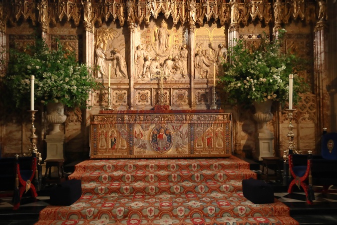 Kaplica St George's ozdobiona kwiatami na slub Harrego i Meghan Markle