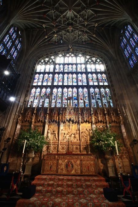 Kaplica St George's ozdobiona kwiatami na slub Harrego i Meghan Markle