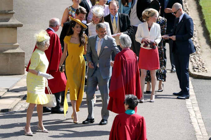 Amal na zolto i George Clooney w drodze do kosciola - Slub Harrego i Meghan