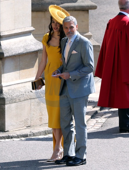 Amal na zolto i George Clooney w drodze do kosciola - Slub Harrego i Meghan