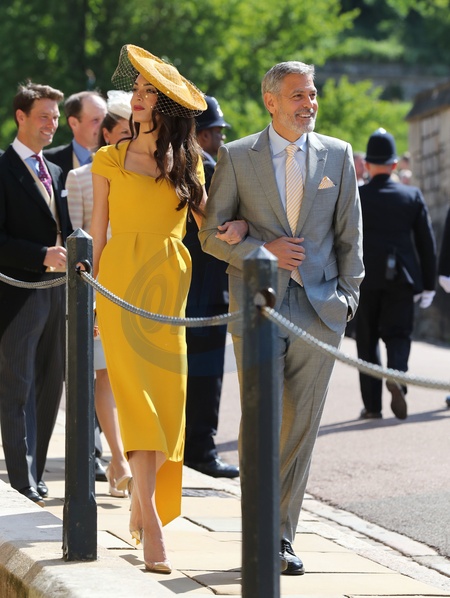 Amal na zolto i George Clooney w drodze do kosciola - Slub Harrego i Meghan