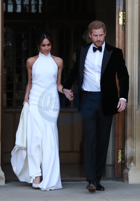 Ksiaze Harry i Meghan Markle - juz przebrani w drodze na przyjecie weselne