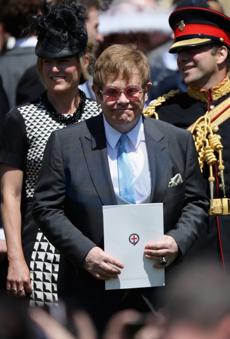 Elton John w rozowych okularach na slubie Harrego i Meghan - cz.2