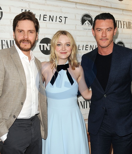 Daniel Bruhl, Dakota Fanning, Luke Evans 11.JPG
