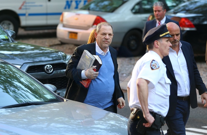 Harvey Weinstein z ksiazkami w drodze na policje