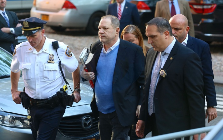 Harvey Weinstein z ksiazkami w drodze na policje