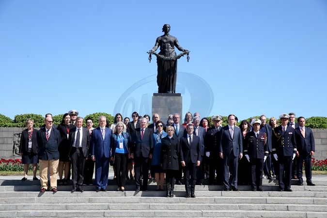 Emmanuel i Brigitte Macron zlozyli kwiaty przed pomnikiem Motherland w San Peterburgu