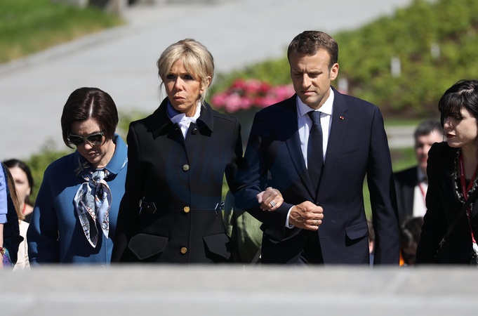 Emmanuel i Brigitte Macron zlozyli kwiaty przed pomnikiem Motherland w San Peterburgu