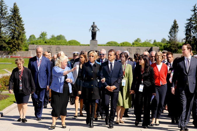 Emmanuel i Brigitte Macron zlozyli kwiaty przed pomnikiem Motherland w San Peterburgu