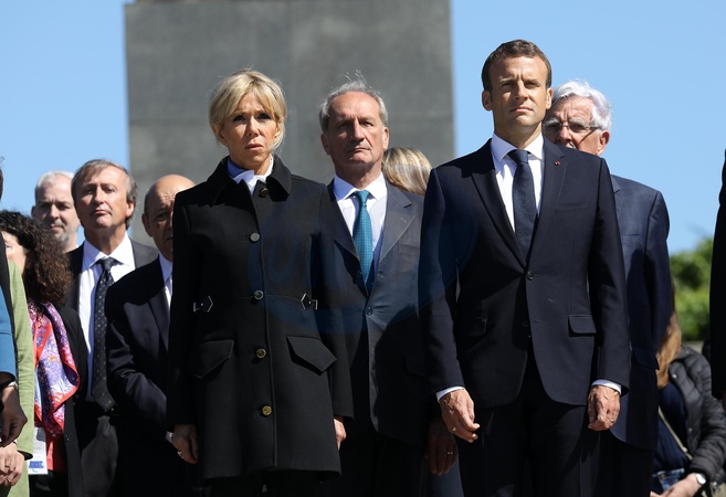 Emmanuel i Brigitte Macron zlozyli kwiaty przed pomnikiem Motherland w San Peterburgu
